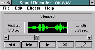 In any case, you want to cue the movie up a few seconds before the quote you want to hear, select "new" on the sound software, play the movie, and hit "record" (on the software, not the VCR!) at the point you want your sound clip to start, and stop at the point you want it to end. With Cool Edit or Sound Effects you don't have to be exact, you can edit the sound after you've recorded it to include only the parts you want. With Sound Recorder or the Mac Sound Control Panel, the only control you have is start and stop, thus our recommendation for using 3rd party software instead of the recorders that come with the operating system you use.